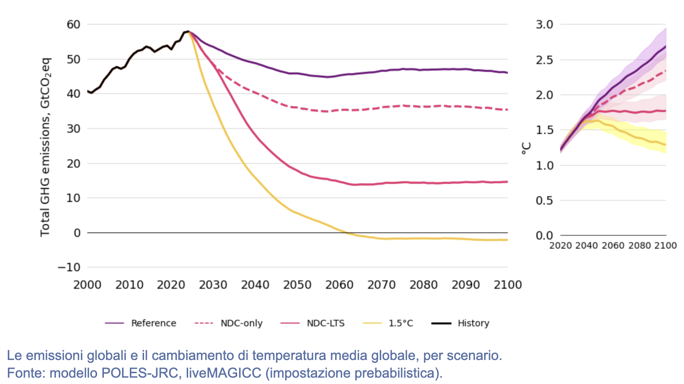 Tuttavia, per limitare il riscaldamento globale a 1,5 gradi, il mondo deve ridurre le emissioni di gas serra del 56% rispetto ai livelli del 2022 entro il 2035, con una riduzione fino al 90% entro il 2050.