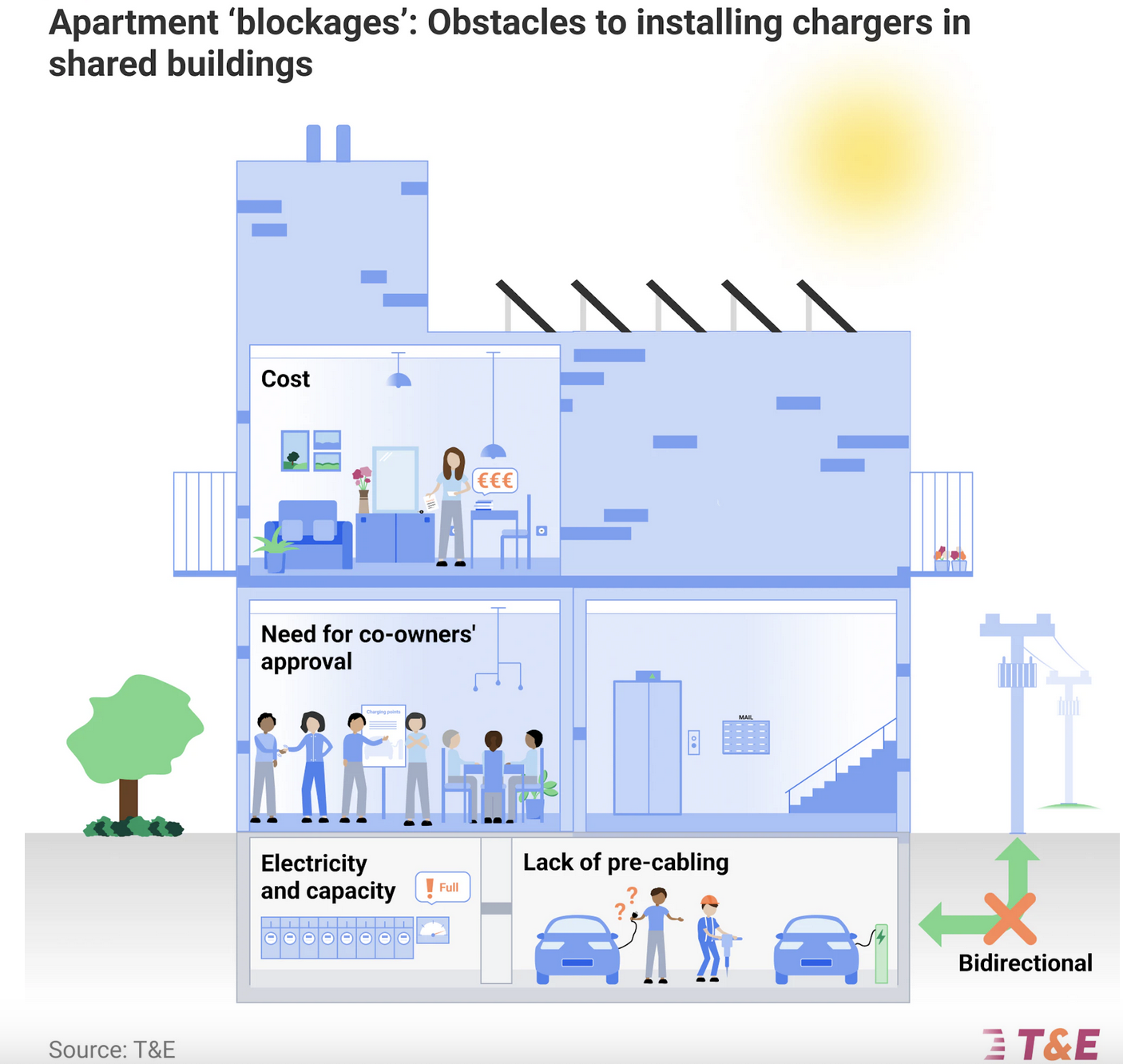 Transport&Environment ha analizzato il quadro normativo di sei Paesi per capire come superare gli ostacoli all’installazione dei caricabatterie nei condomini